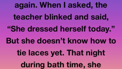 The boy happily waits for his father to come home from work and greets him with, “I know the whole truth.”