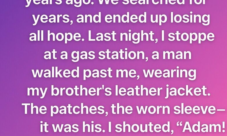 For years, I searched for my missing brother, chasing dead-end leads and hiring investigators. Hope faded with time, replaced by a constant ache. Last night, everything changed. At a gas station, I spotted a man in my brother’s unmistakable leather jacket—worn, patched, and stained. My heart stopped. I yelled, “Adam!” He froze, his face pale, eyes wide with fear and recognition. As I stared, my phone buzzed. An unknown voice said, “Don’t lose him this time,” then hung up. He bolted. I chased him, calling his name, but he vanished into the dark. For a moment, our eyes met, and I knew it was him. Alive.