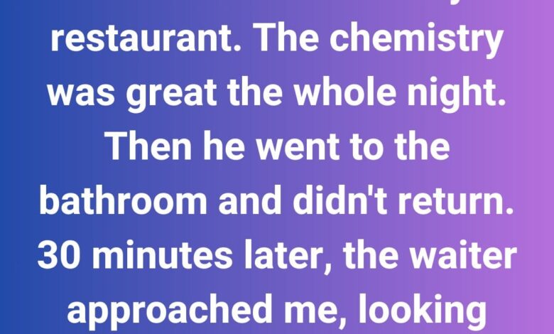 Then, he went to the bathroom and didn’t return. Thirty minutes later, the waiter approached me, looking very pale. I froze when he said, “Miss, you need to cover the bill.”