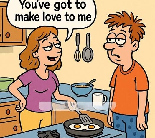 One morning, she was making breakfast in her favorite T-shirt when she whispered, “I need you now.” Stunned, I didn’t hesitate, and we shared an intense moment on the kitchen table. Afterward, she casually resumed cooking. Confused, I asked what sparked it. She shrugged, “The egg timer stopped working.” I laughed, realizing it was about a broken timer, not romance.