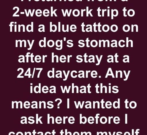 After a two-week work trip, I returned to find a mysterious blue tattoo on my dog Zuni’s stomach, spotted while she slept. She’d stayed at WagMore Acres, a “luxury” 24/7 dog daycare. The mark wasn’t there when I dropped her off. I posted about it in a local pet owners’ group, and comments suggested it was a spay tattoo, but Zuni was already spayed when I adopted her.