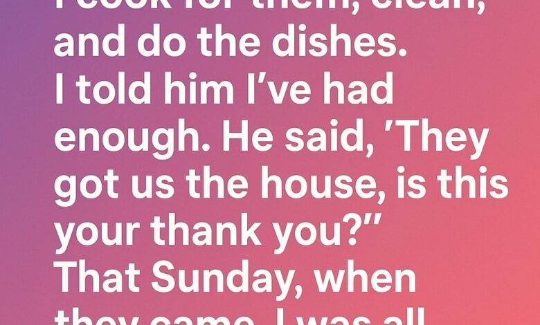 Every Sunday, Mia’s home became a lively hub for her husband’s family of eight. She woke early to cook, set the table, and clean the kitchen, but felt unappreciated as she washed dishes alone while others chatted. Tired of being taken for granted, she shared her exhaustion with her husband. He dismissed her, citing their family’s help with their house as her obligation. Hurt but determined, Mia planned a subtle change.
