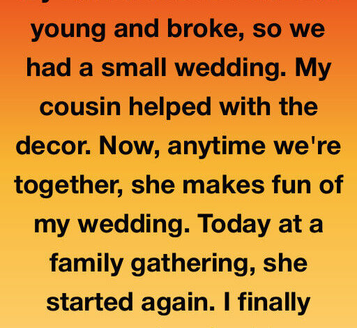 Years ago, my husband and I had a modest wedding, decorated with help from my cousin Daria. But over time, she mocked our “cardboard aisle” and “plastic bouquet” at every family gathering. At a recent event, after a decade of silence, I snapped, saying, “At least it was built on love, not Instagram likes.” The room froze; Daria deflected, but I stood firm, tired of her jabs about our DIY wedding, especially since her lavish one ended in divorce.