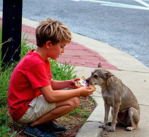 One spring, his lunchbox came home empty daily. Curious, I followed him behind the old hardware store. There, he split his sandwich with Rusty, a starving stray—matted fur, ribs showing. Their routine began: food, water, quiet talks. I added extras; Theo whispered, “Thanks, Mom.”