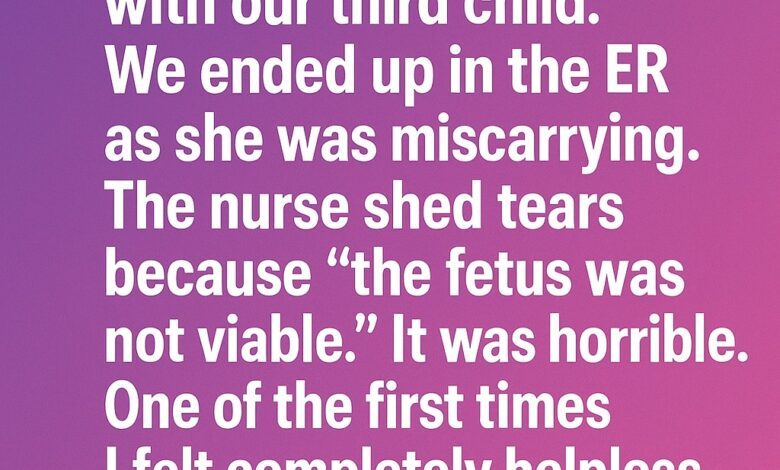 My wife was pregnant with our third child. We ended up in the ER as she began to miscarry. The nurse shed tears with us, explaining gently that the pregnancy wasn’t viable. It was one of the most painful nights of our lives — and one of the first times I felt completely helpless, unable to protect the person I loved most.