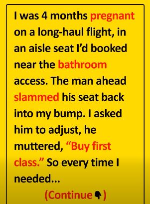 “I was 4 months pregnant on a long-haul flight, crammed into an aisle seat I’d booked weeks in advance near the front for easier bathroom access. The second we were in the air, the man in front of me slammed his seat back so hard it almost hit my small bump.