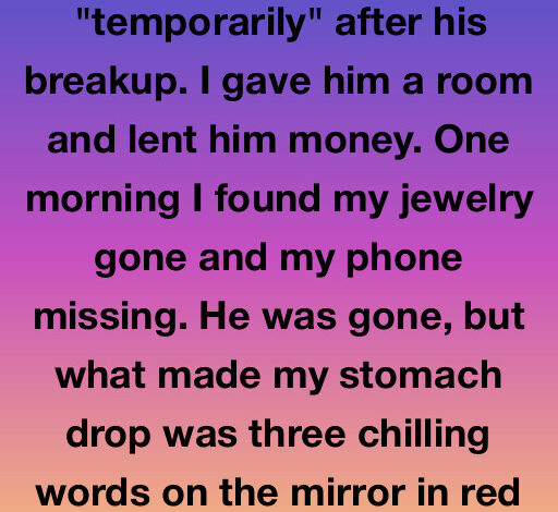 My brother moved in “temporarily” after his breakup. I gave him a room, cash, trust. One morning: jewelry gone, phone missing, him vanished. On the mirror, red lipstick: **“Don’t Trust Family.”**