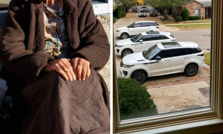 I’m a single mom of three, working nonstop just to keep us afloat. We live in the house my grandma left me — it leaks, it creaks, but it’s ours. That Friday, I had just picked up my paycheck and was heading home with groceries when I saw her: an older woman sitting on the curb, shivering in layered sweaters, holding a cardboard sign that said, “Hungry. Please help.”