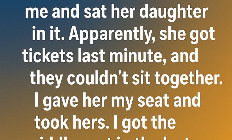 She told me she’d gotten last-minute tickets and couldn’t sit with her daughter. Without thinking twice, I gave up my seat so they could be together, and I took her middle seat in the last row. It wasn’t ideal, but it felt like the right thing to do.