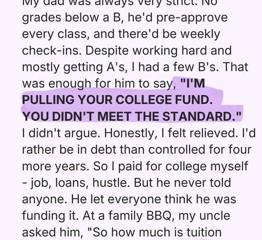 I didn’t argue. I felt relieved. I chose loans, jobs, side hustles—anything over four more years of control. But he never told the truth. He let the family believe he was proudly paying for my education.
