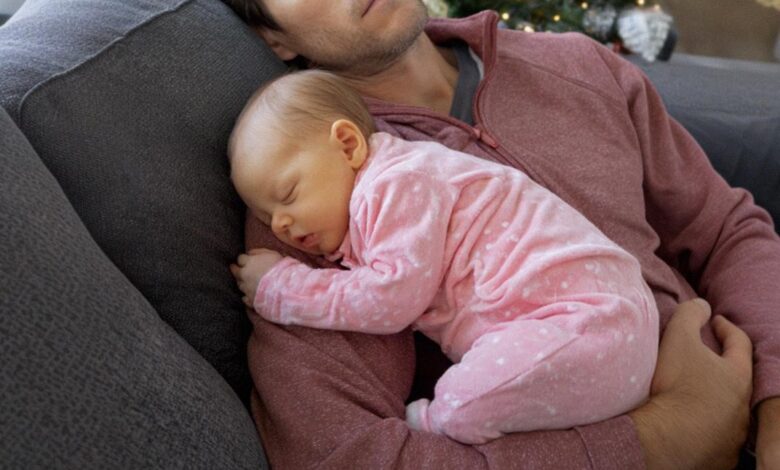 I came home early on Christmas Eve, expecting quiet. Instead, I found my husband asleep on the couch with a newborn baby cradled against his chest.