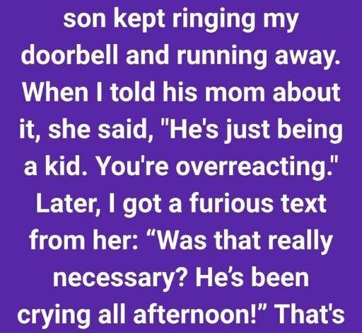 I told him gently but firmly that if it continued, I would document it and involve his school and the community officer—not to punish him, but to make sure everyone understood there were consequences. I explained that repeatedly disturbing someone’s home isn’t harmless fun. It’s stressful and invasive.