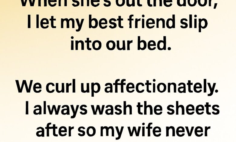 As soon as she’s gone, I let my best friend slip into our bed. We curl up, warm and quiet, and I always wash the sheets afterward so my wife never suspects a thing.