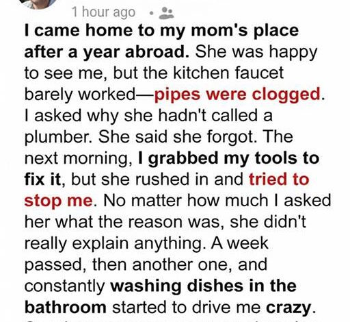 The house felt off from the start. Dishes were stacked everywhere because the sink barely worked. When I reached for a wrench, my mom screamed like I’d touched a live wire. She hovered, checked locks obsessively, and insisted a plumber handle it. Nothing about her fear made sense.