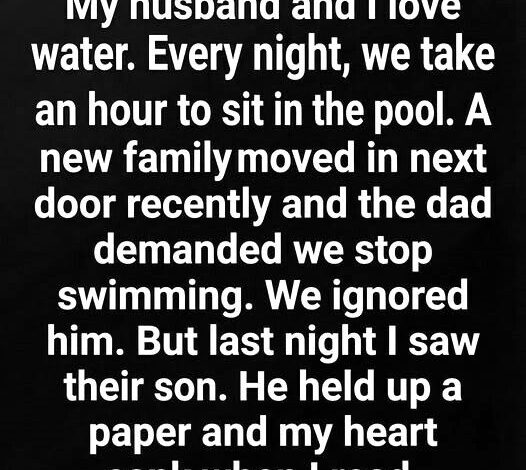 When a new family moved in next door, we exchanged polite waves and continued as usual, until one evening the father asked us to stop using the pool at night. He didn’t explain much, only said it caused problems. Confused and protective of our harmless routine, we kept going.