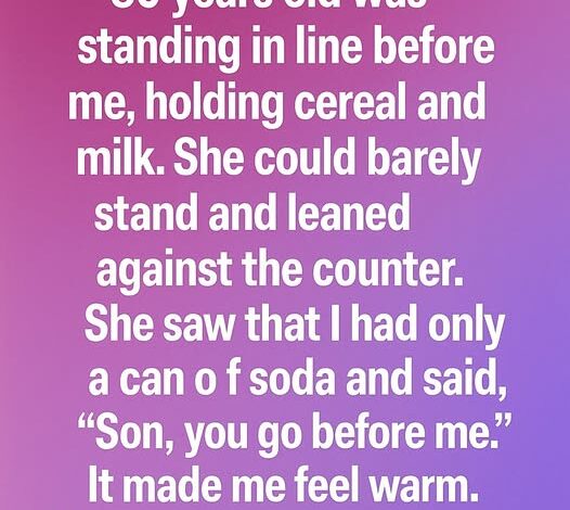 She noticed my single soda and smiled. “Son,” she said softly, “you go before me.”