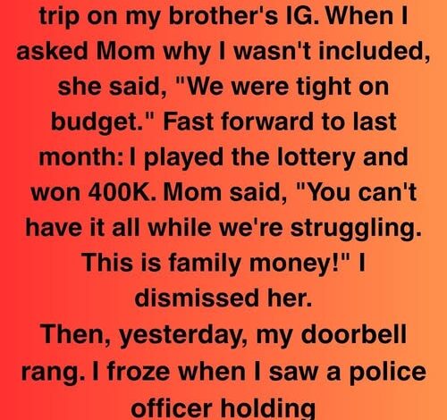 A month ago, everything changed. On a whim, I bought a lottery ticket—and won four hundred thousand dollars. When my mom found out, she immediately said the money should belong to the whole family. She argued it wasn’t fair for me to keep it while they were “struggling.”