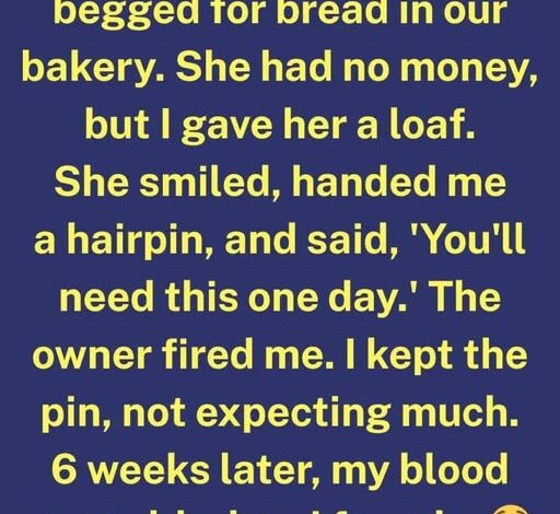 A pregnant woman once came into our bakery just before closing. Her clothes were worn, her hands trembling, and her eyes full of quiet desperation. She asked for a piece of bread—anything—because she hadn’t eaten all day. Though she had no money, I gave her a fresh loaf. She smiled softly and handed me a simple metal hairpin. “You’ll need this one day,” she whispered.