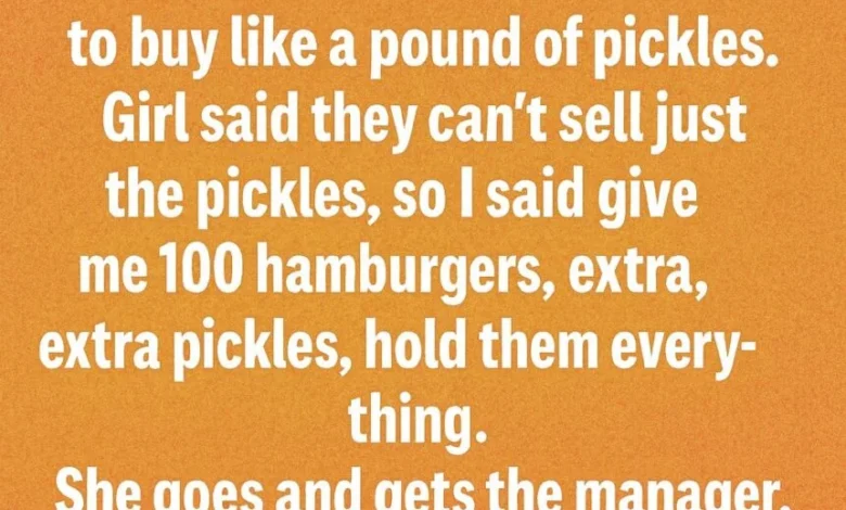 I left feeling disappointed but determined. I joked, “Fine, give me 100 hamburgers with extra pickles and hold everything else.” She laughed and called the manager.