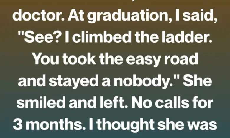 Years passed. I excelled in school. College. Medical school. Residency. Every milestone felt like proof her sacrifices had worked. At my graduation, I found her in the back row, clapping softly.