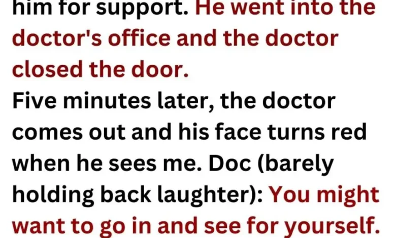 Five minutes later, the doctor came back out. The second he saw me, his face turned red and he pressed his lips together like he was trying not to laugh.