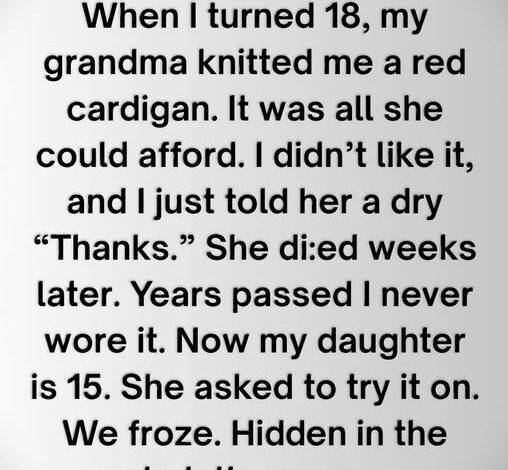 When I turned eighteen, my grandmother gave me a red cardigan she’d knitted by hand. It was simple, not stylish, and I thanked her politely before tucking it away, unaware that her tired hands had spent months on every stitch.