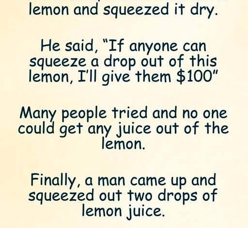 In a crowd, a man held up a lemon and squeezed it completely dry.