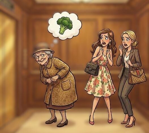 About three floors later, the old woman has reached her destination and is about to get off the elevator. Before leaving, she looks the two beautiful women in the eye, then bends over, farts, and says…