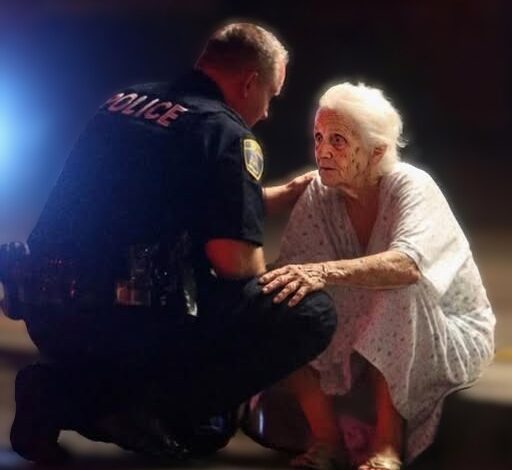 That night, I rolled up expecting a prowler. Instead, an old woman stood barefoot under a streetlamp in a thin nightgown, shaking. When my lights hit her, she flinched and whispered, “Please don’t take me.”