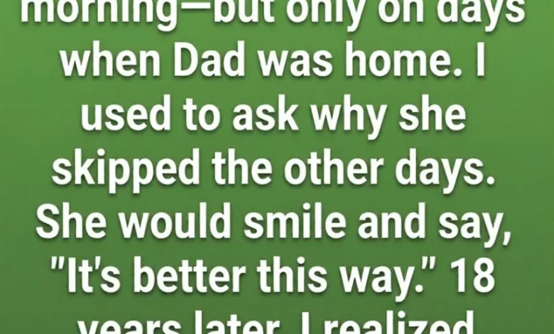 When Dad traveled, everything felt lighter. Mom lingered at breakfast, laughed at spilled milk, and we rushed out with my hair loose. I thought she was simply relaxing when it was just us.