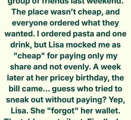 When the check came, I suggested we each pay for what we ordered. Before anyone could respond, Lisa rolled her eyes. “You’re always so cheap,” she said loudly. “If you can’t afford to eat out, maybe you shouldn’t come.”