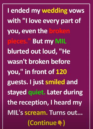 I felt my face burn, but I refused to give her what she wanted. I simply smiled, finished my vows, and stayed quiet. My husband looked furious, but we kept the ceremony moving.