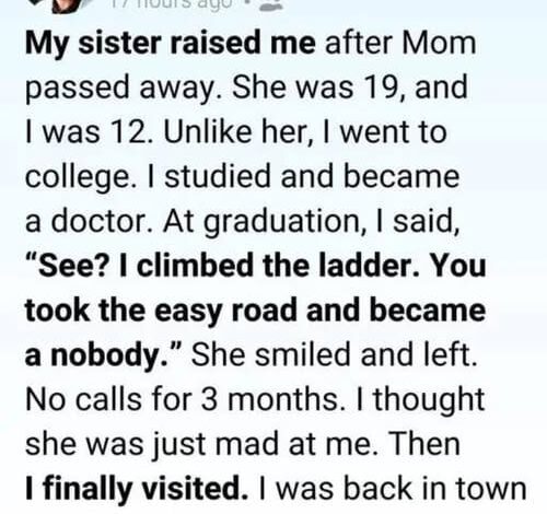 My mother died when I was twelve, and my nineteen-year-old sister became everything. She quit college, worked two jobs, and carried our lives with quiet strength. She made hardship look manageable, always saying, “We’ll be fine.” And somehow, we were.