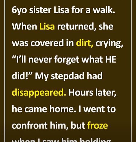 Once, my stepdad took my 6-year-old sister Lisa for a walk. When she came back, she was covered in dirt, crying, “I’ll never forget what he did!” My heart dropped—and my stepdad was nowhere in sight.