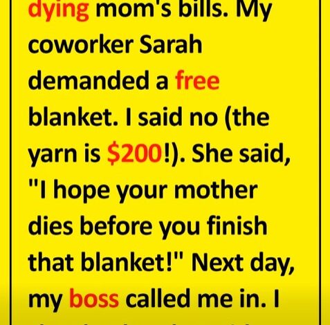 I knit at work to pay my dying mom’s bills. My coworker Sarah demanded a free blanket. I said no (the yarn is $200!). She snapped, “I hope your mother dies before you finish that blanket!”