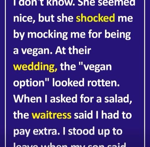 I recently attended my son’s wedding, hoping to celebrate one of the happiest days of his life. I don’t know his wife very well since they live in another state, but from the start, there was tension—especially when she mocked me for being vegan. I chose to ignore it for his sake.