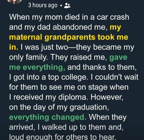 My name is Sarah, and my life changed on the day of my graduation. Raised by my grandparents after losing my mom and being told my father abandoned me, I believed they were my only family. That day, a stranger approached me—and claimed to be my father.