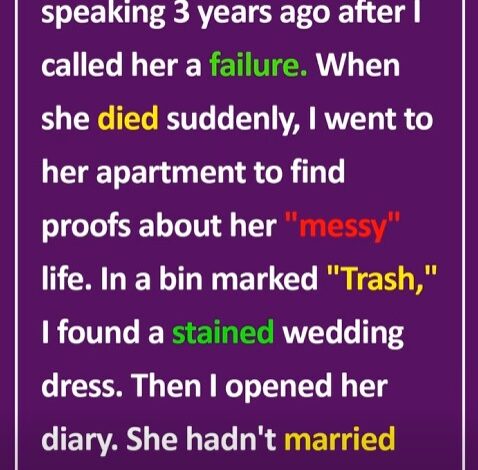While going through her things, I found a cheap, stained wedding dress in a bin labeled “Trash.” I assumed she’d had some secret, sad wedding without me. But then I found her diary—and everything I believed collapsed.