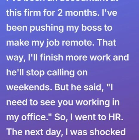 After just two months as an accountant, I pushed for remote work to improve productivity and protect my time. My boss refused, so I went to HR. They responded vaguely, and soon after, his behavior shifted—more pressure, more scrutiny.